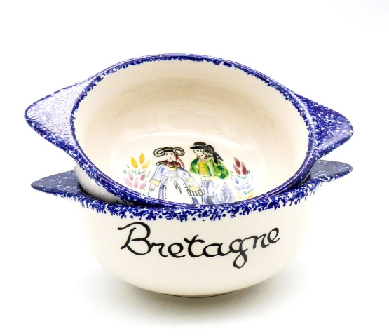 Tout a commencé au 18ème siècle. Les familles aisées ont commencé à échanger leur écuelle contre ces fameux et luxueux Bols Bretons ! Par la suite, la Faïence de Quimper a remarqué que ce nouvel objet était en train de devenir un souvenir de Bretagne. Donc malins comme ils étaient, ils ont démarré une grande production autour du 19ème siècle ! Ils sont à l’origine des petites « oreilles » de chaque côté des bols, ainsi que des prénoms des destinataires rajoutés sur la face ! Quel chouette souvenir avec son nom inscrit dessus !