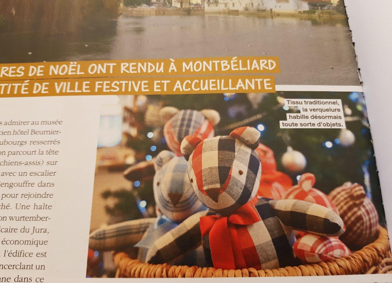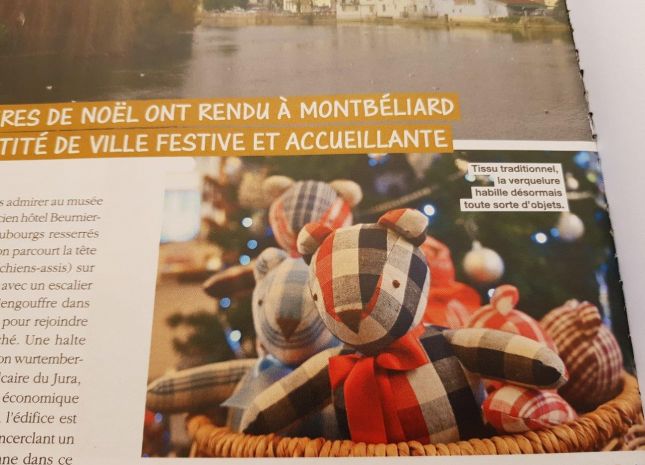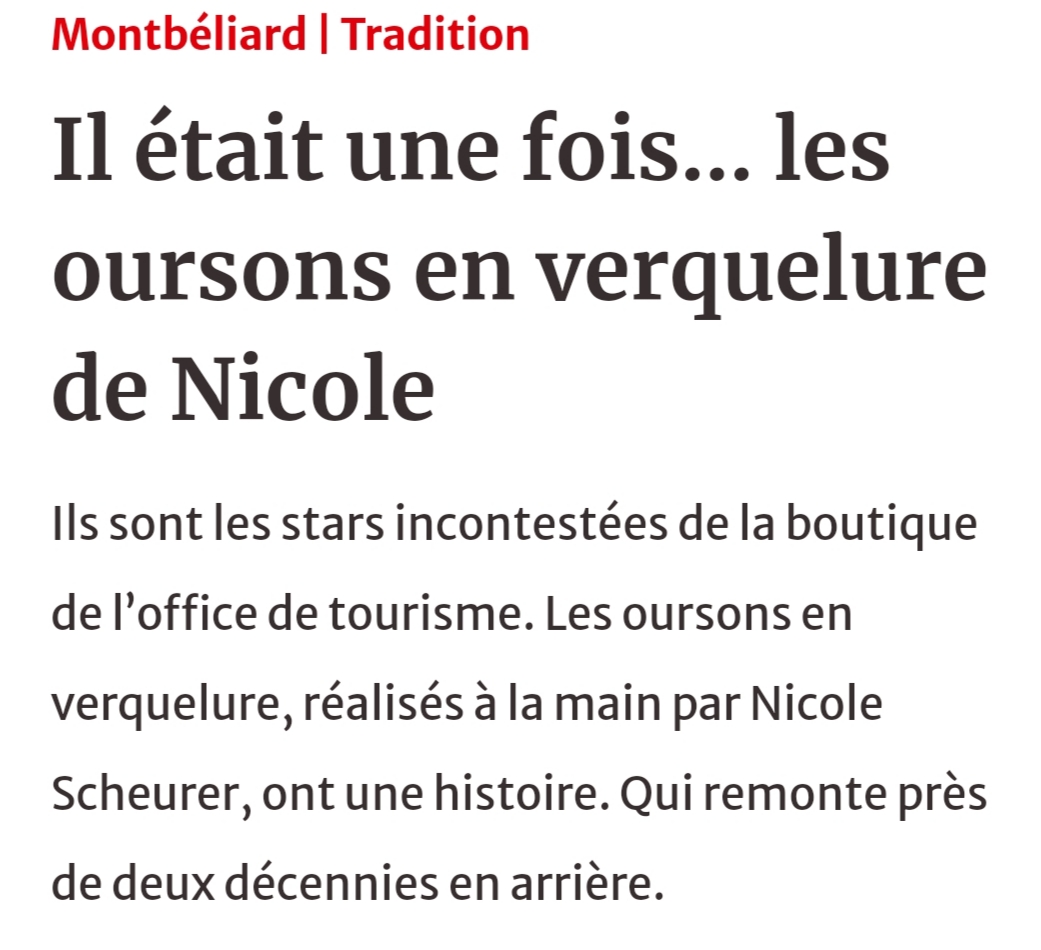 C’est là que l’histoire prend un tournant et un nouvel essor. Il y a de cela trois ans, la manufacture Metis, basée à Étupes, décide de ressusciter et relancer le tissage de cette toile traditionnelle du terroir. De son côté, l’Office de tourisme qui entend mettre en avant ce « trésor » du patrimoine local, cherche à le faire décliner et songe aux fameux oursons de Nicole Scheurer, alors connus de quelques initiés seulement. Bénévolement (N.D.L.R. : l’office lui fournit la matière première), la dame accepte de mettre son talent au service de la structure et de lui fournir un maximum de ces petits ours, en nouvelle verquelure, qui sont ensuite vendus dans la boutique. Un vrai succès ! À peine sont-ils en rayon qu’ils sont illico adoptés, moyennant 45 €.
