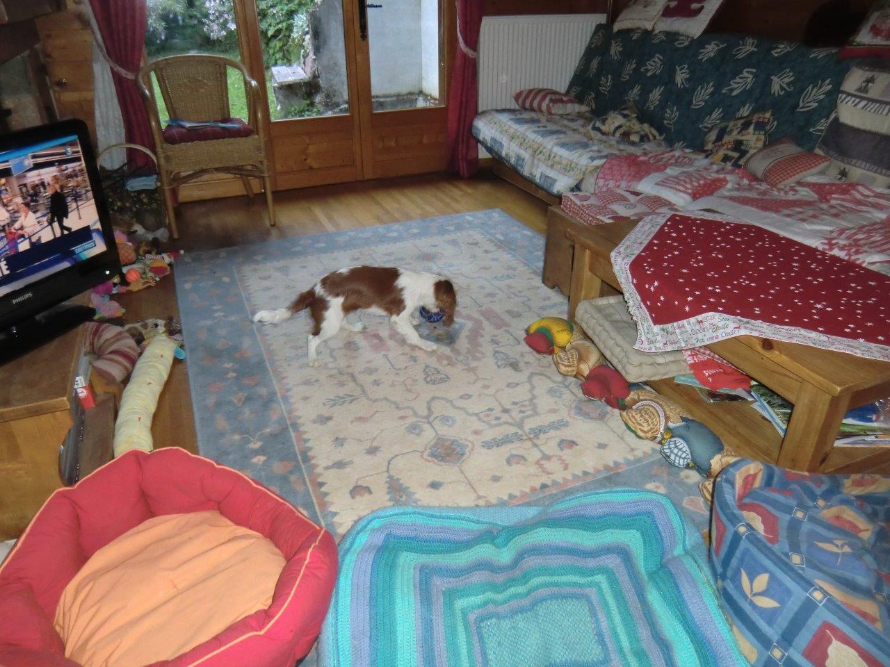 Juliane dans son arène, afin d'éviter que les croquettes ne glissent sous les meubles.