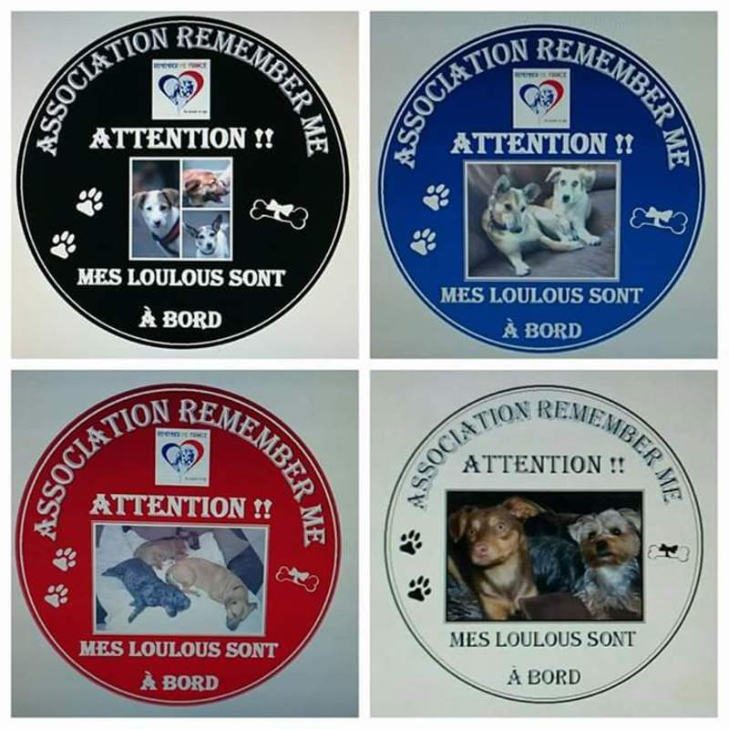 * Sigle animaux à bord: Pour votre chien, chat ou autres animaux ceux-ci sont rond à ventouse et couleurs au choix . Vendu 7€ frais de port compris. Dont 5€ pour Remember Me.